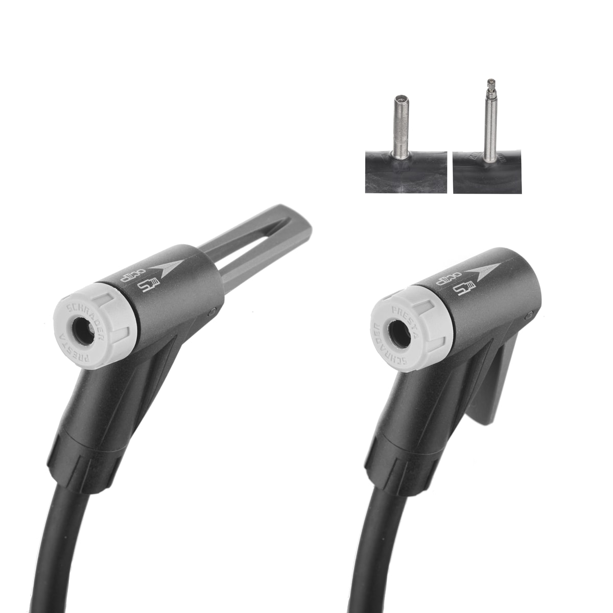 • Clever Valve 2-in-1 pump head for Presta and Schrader valve